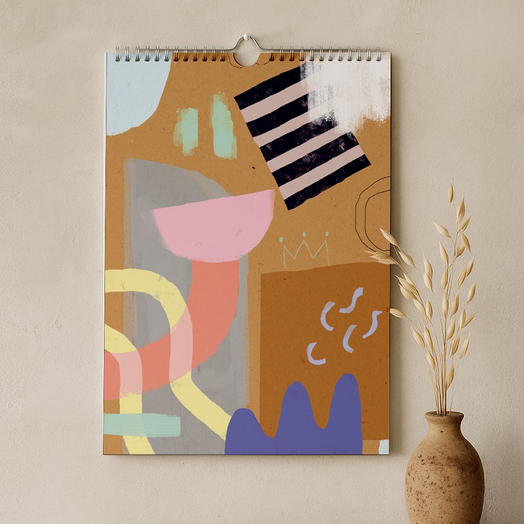 • handillustriertes, abstraktes Design in sanften Pastell- und Erdtönen