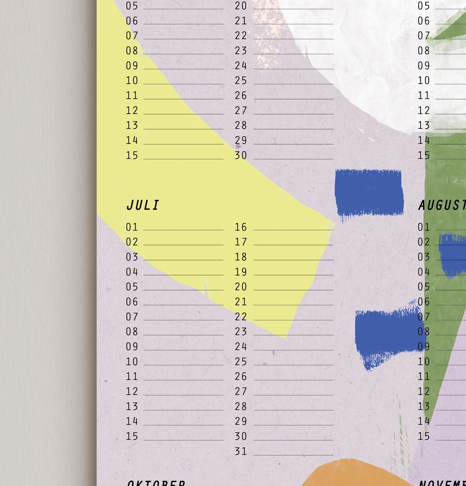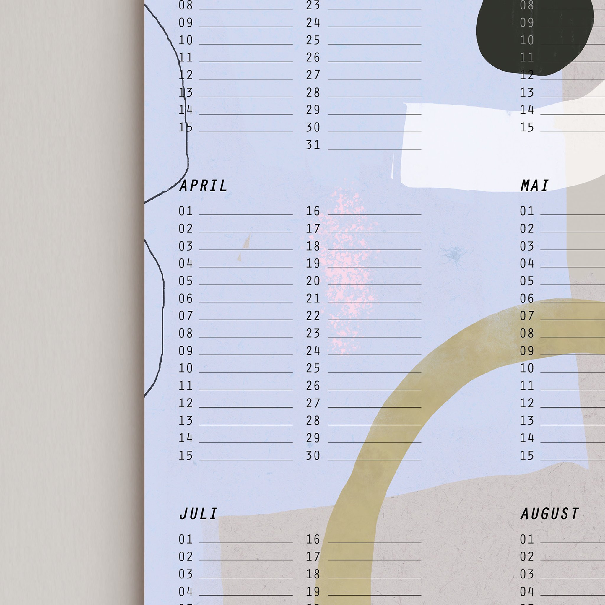 Auf den Rückseiten befinden sich wie immer hochwertige Artprints, die du nach Ablauf der Monate ganz einfach als Poster weiterverwenden kannst. So wird aus einem Kalender ein langlebiges Designprodukt statt ein Wegwerfartikel.