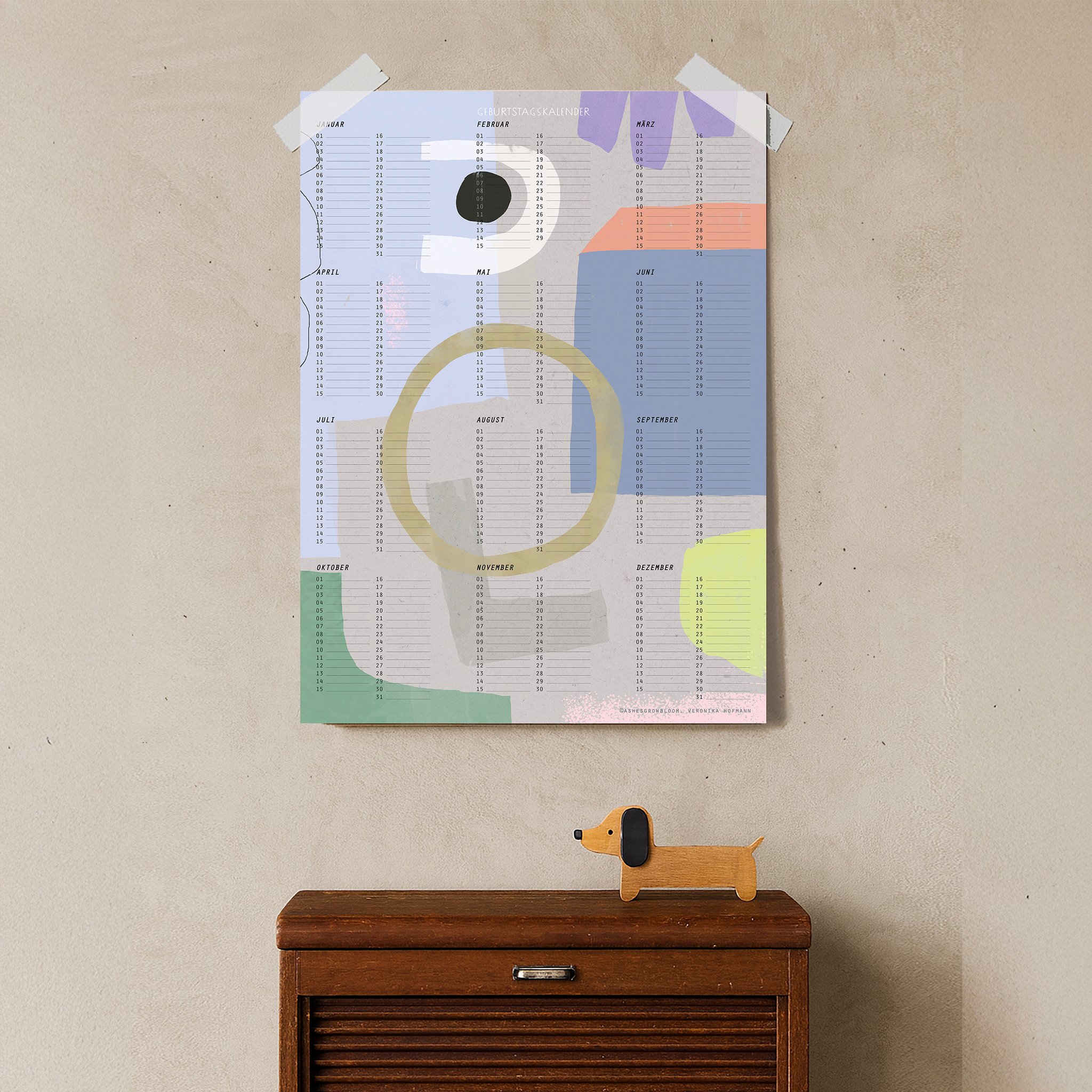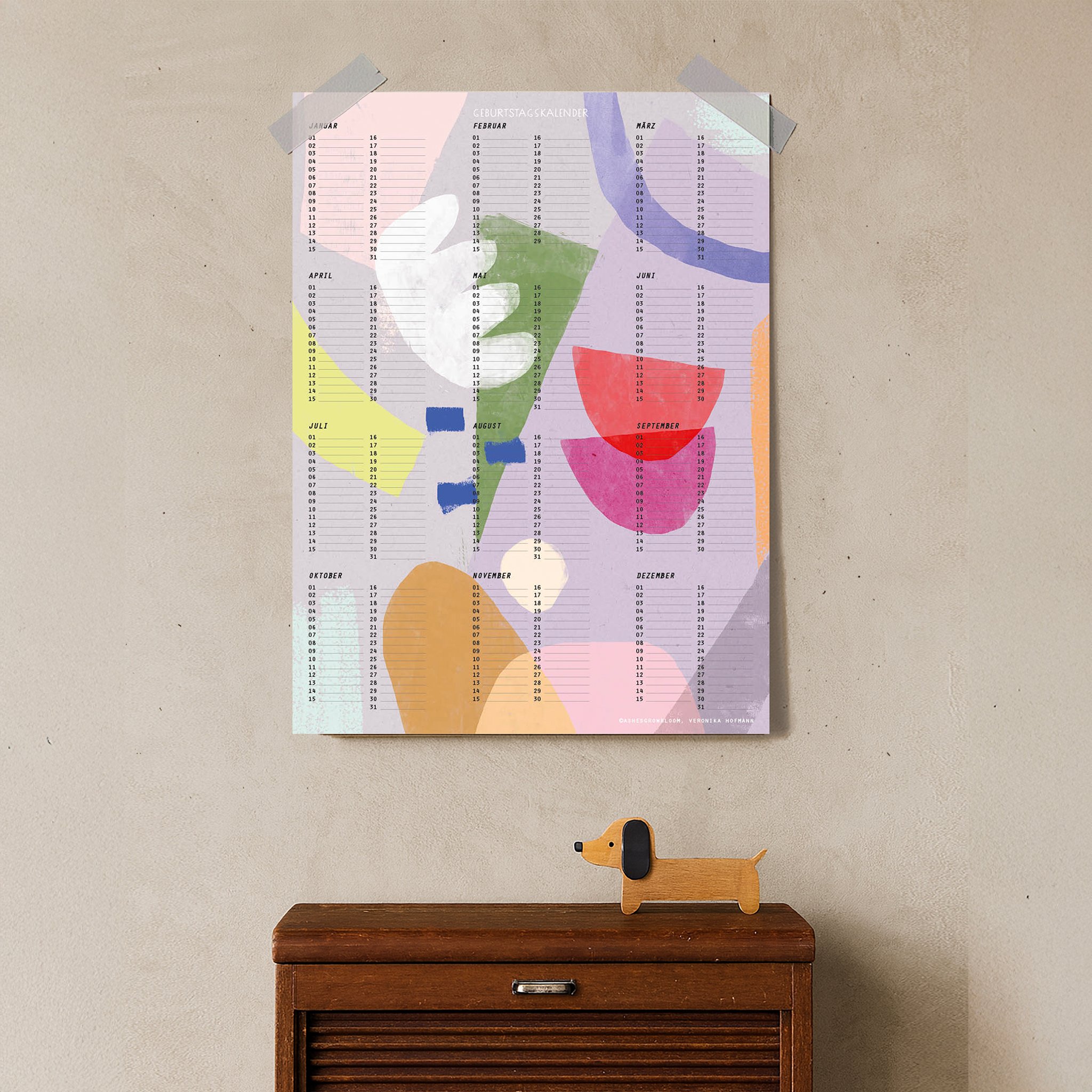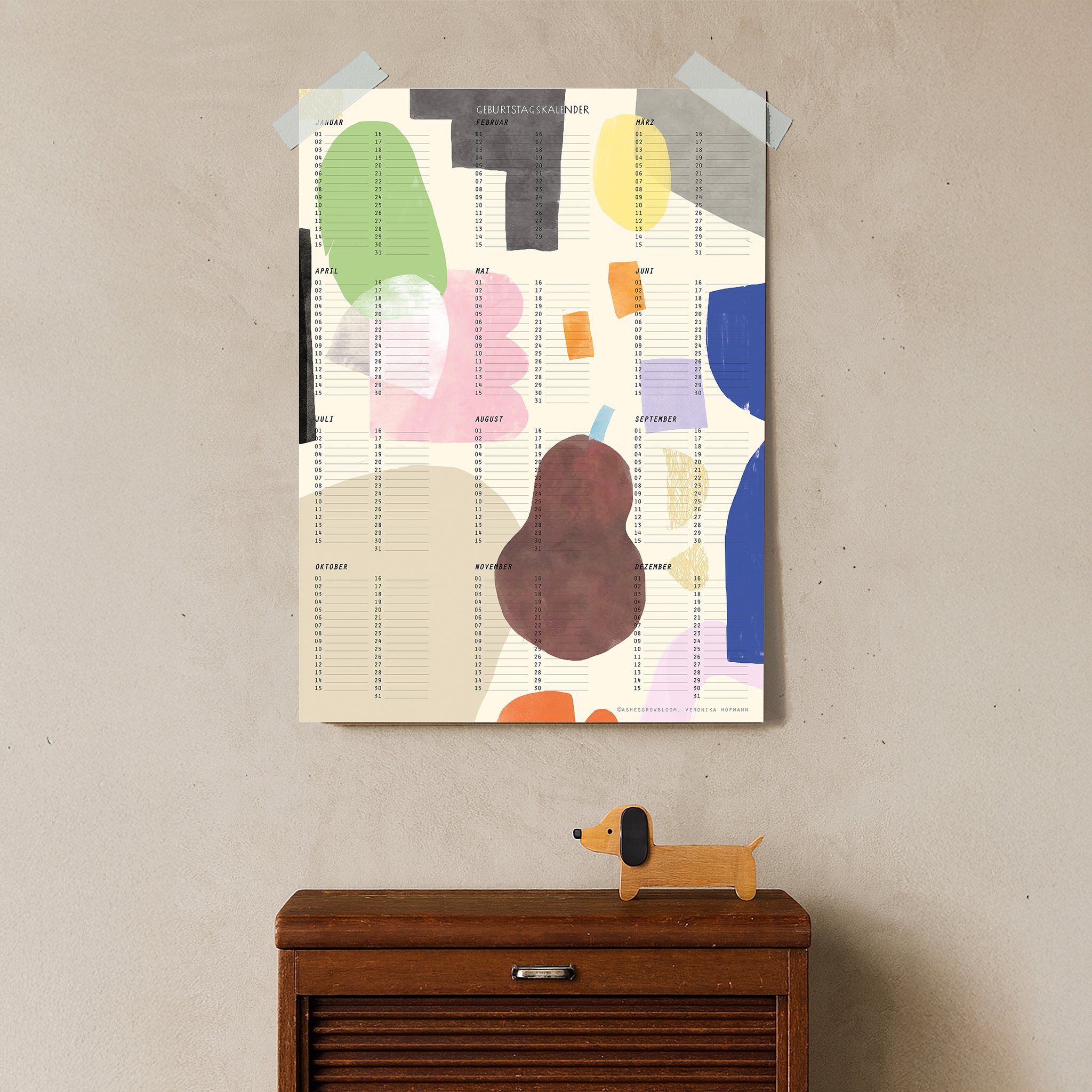 Der Geburtstagskalender ist ein zeitloses Wandaccessoire für alle, die Kunst und Organisation lieben. In zarten, aber lebendigen Farben erinnert dich dieser Kalender das ganze Jahr über an die schönsten Tage – Geburtstage, Jubiläen oder besondere Momente – ganz ohne Ablaufdatum.