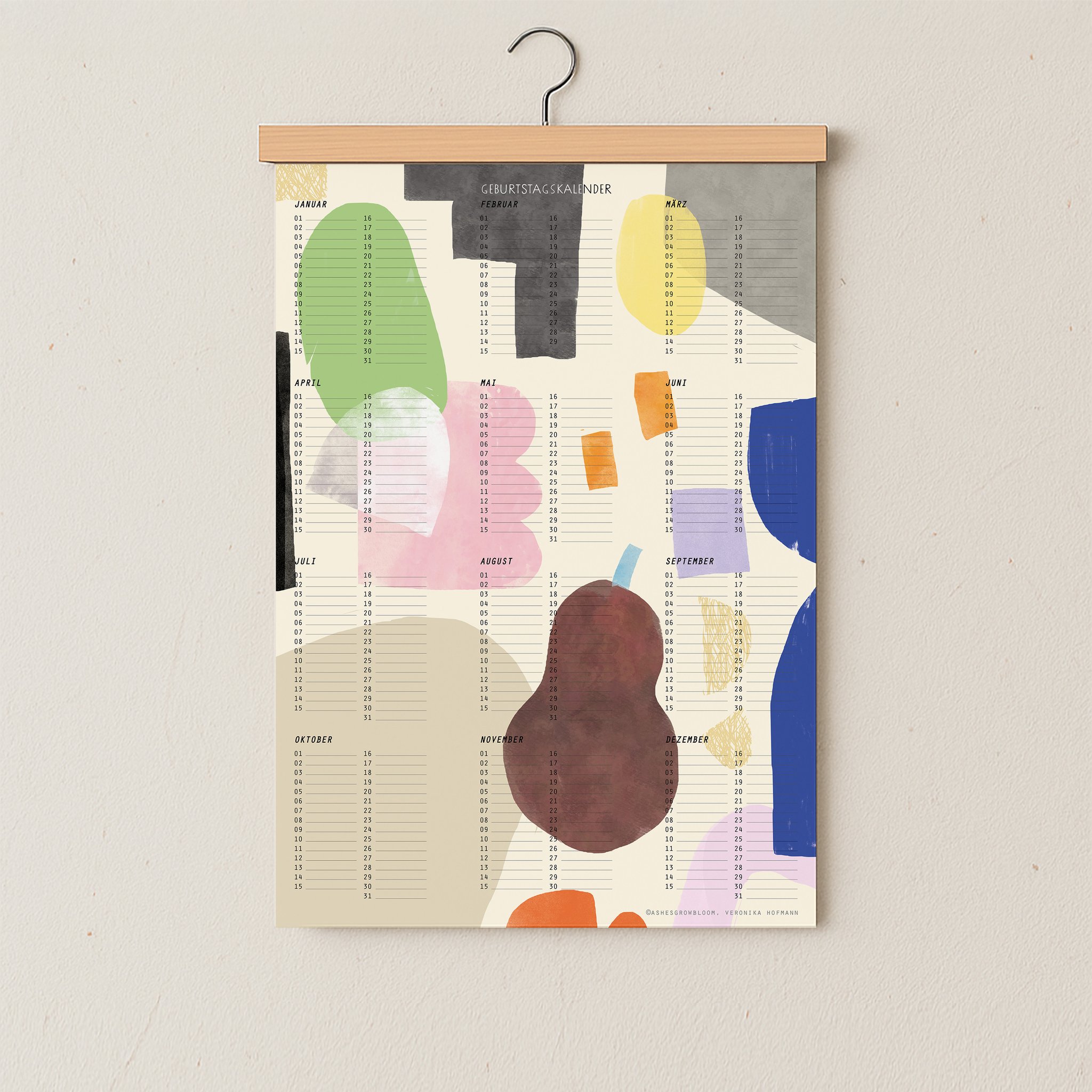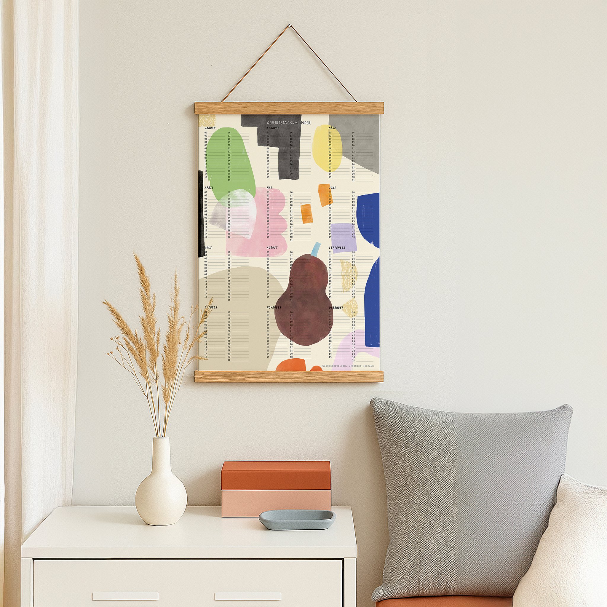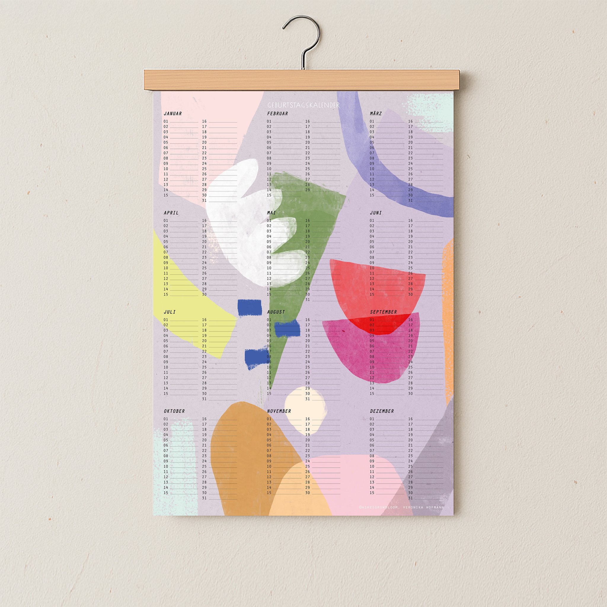 Der Geburtstagskalender ist ein zeitloses Wandaccessoire für alle, die Kunst und Organisation lieben. In zarten, aber lebendigen Farben erinnert dich dieser Kalender das ganze Jahr über an die schönsten Tage – Geburtstage, Jubiläen oder besondere Momente – ganz ohne Ablaufdatum.